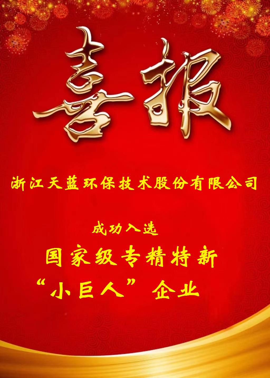 近日,浙江省經(jīng)濟(jì)和信息化廳發(fā)布了《關(guān)于浙江省第四批專精特新“小巨人”企業(yè)和第一批專精特新“小巨人”復(fù)核通過企業(yè)名單的公示》,天藍(lán)環(huán)保憑借在大氣污染治理領(lǐng)域的技術(shù)創(chuàng)新綜合實(shí)力和市場(chǎng)占有率,成功入選國(guó)家級(jí)專精特新“小巨人”企業(yè)名單。